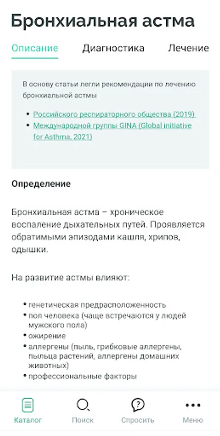 The "Medical Advisor" application was created and maintained by the therapist Andrey Grishkovets. Contains constantly updated articles on the diagnosis and treatment of the most common diseases. The texts are written in a language understandable to the layman based on world clinical guidelines. Allows you to compare the treatment prescribed by your doctor with the protocols of the leading European, Russian and American medical associations. There is an opportunity to ask a question to a consultant. In the near future - chat, assistance in organizing treatment.