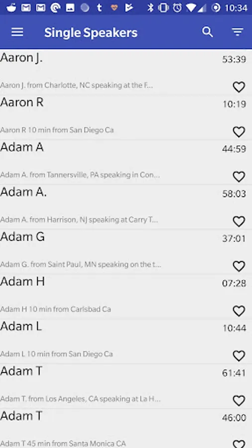 300+ speakers speaking at Alcoholics Anonymous conventions worldwide with descriptions of where they are from and where they are speaking.