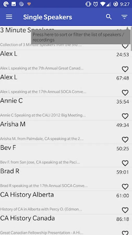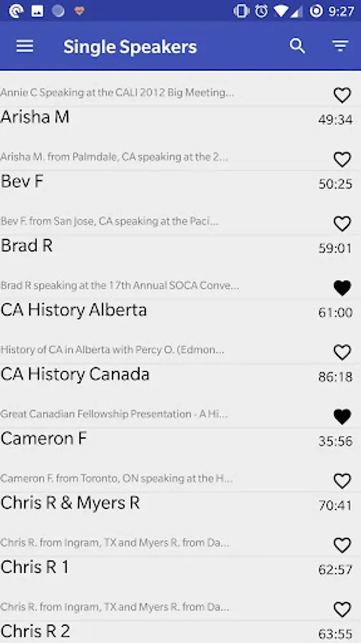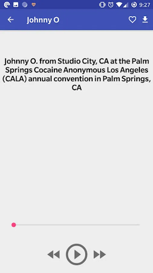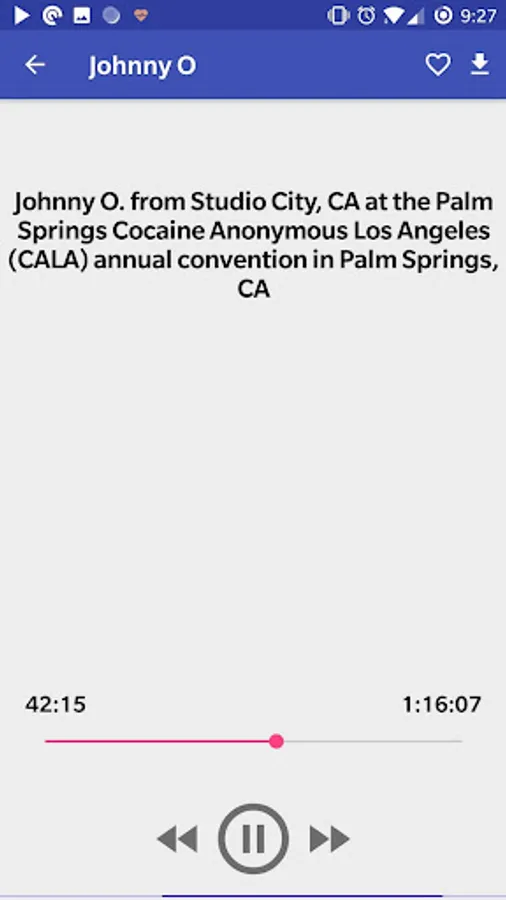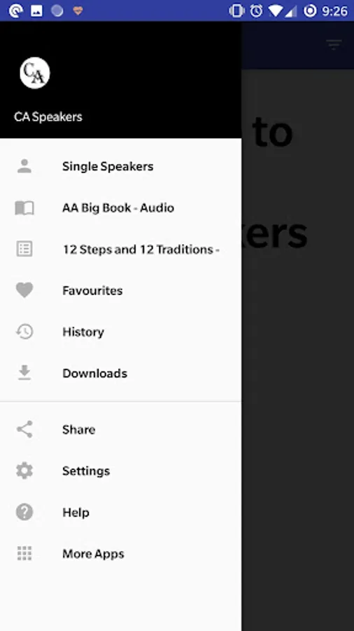 The CA speakers app allows you to listen to recovery speakers, workshops and audio books from Cocaine Anonymous (a 12 step program) whenever and wherever using simply a wifi or cellular network connection.