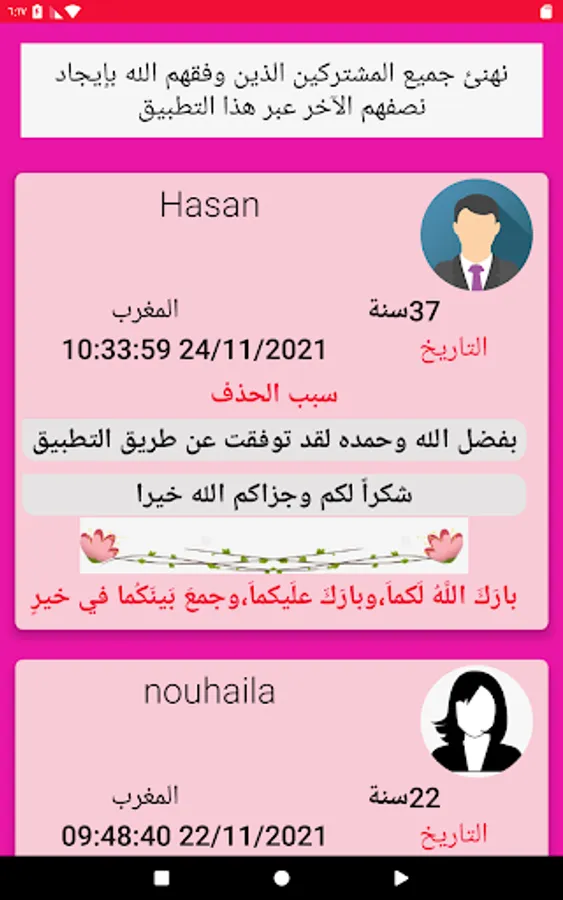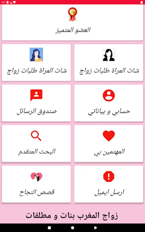 Marriage of girls and divorced women in Morocco is a free marriage application, and you can subscribe at a low cost so that we can always offer you the best, and the application is completely free for women with all its features, in order to encourage them to use the application, and to take responsibility for choosing their life partner in the most appropriate way for them.