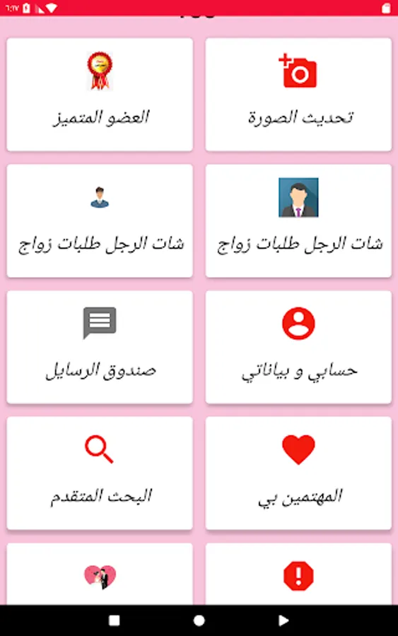 One of the important features of the application is that it includes all classes and layers of Arab societies and all jobs, which constitutes a greater field for every girl to find what she is looking for from a husband that suits her socially and is compatible with her dreams