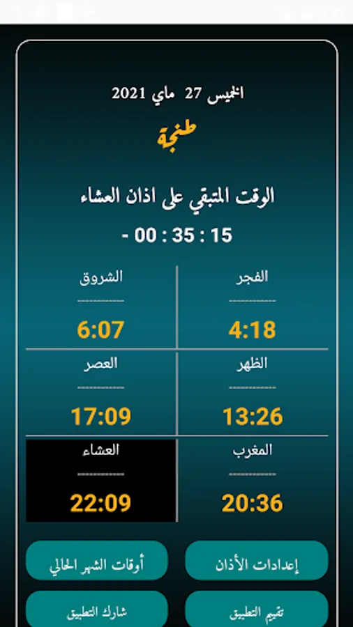 Azan times Morocco without Net is an application that offers prayer times for Moroccan cities. In this application we show prayer times Morocco without complications and without any account and without the need for your site. Azan times without Net offers prayer times in Morocco according to the Ministry of Awqaf and Islamic Affairs. This indicates that the prayer times of Morocco are exact and without any error.
