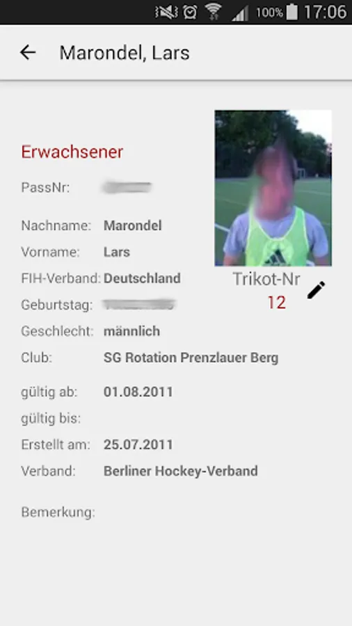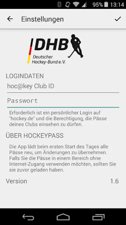 The app is officially approved by the German Hockey Association. Required is a personal log on hockey.de and the authorization to see the passports of your club.