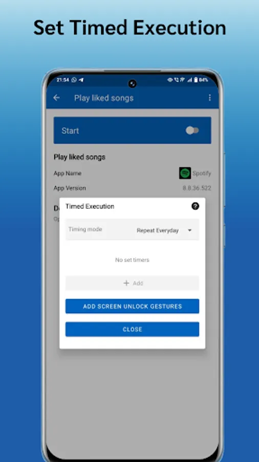 - Timed Execution : Take control of your schedule with timed execution. Our app allows you to set specific timings for automation. Whether you need a series of actions to be executed at a particular time or want to automate tasks at regular intervals, the timed execution feature has got you covered. You can even play an automation while your phone is locked!
