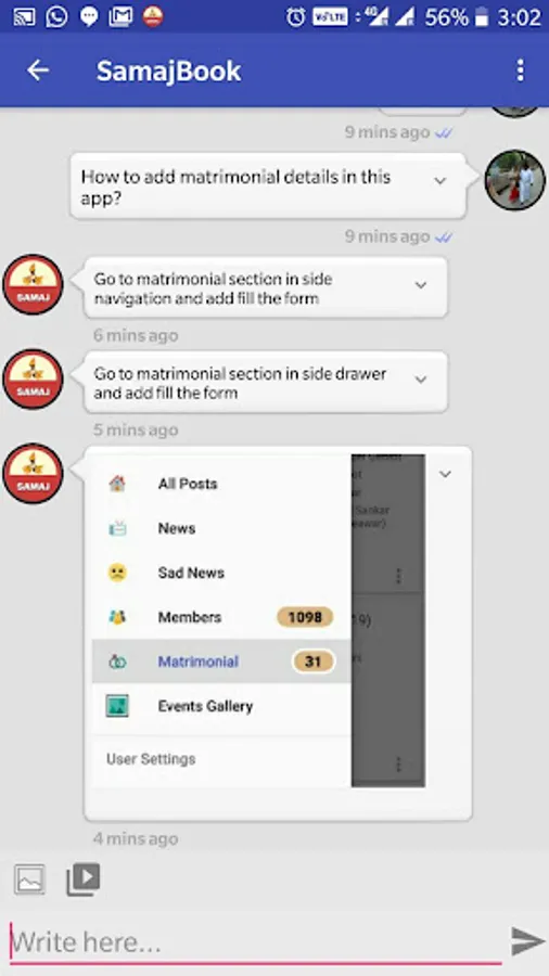 - SamajBook solves the problem of unnecessary messages piling up on important event news in the community's groups chat conversations of existing social networking apps.