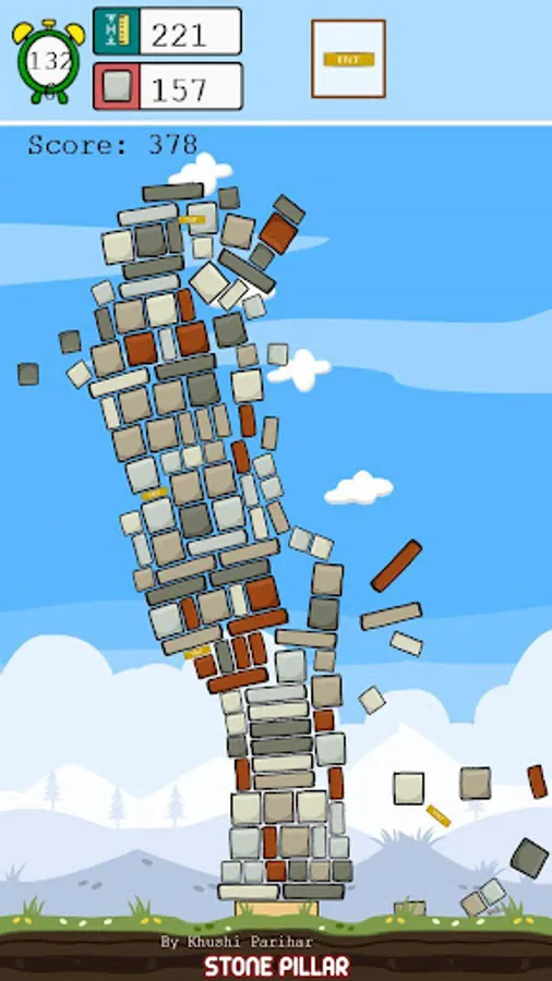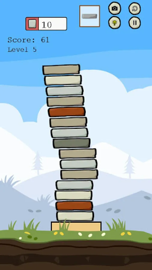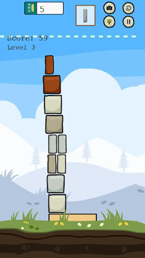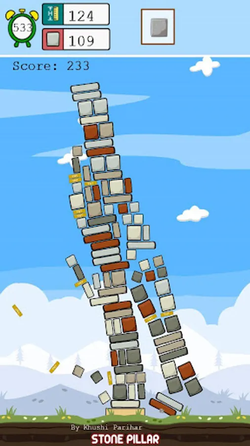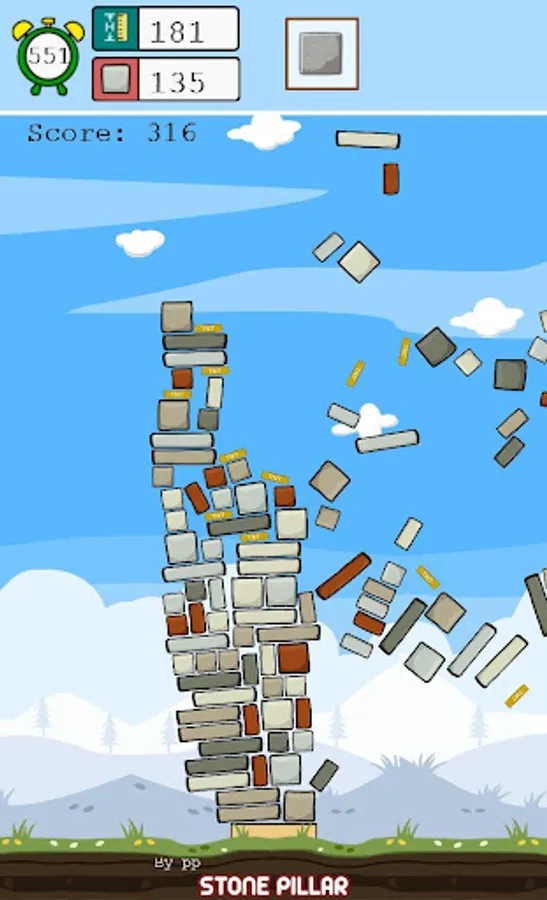 Stonepillar is a simple game to play with physics of weight balancing. Simple tap and release to put a block of stone at the ground. And turn by turn stack each block to create a heighted tower. You need to maintain center of mass of the whole building at such a position that tower formed as a result does not fall to the ground.