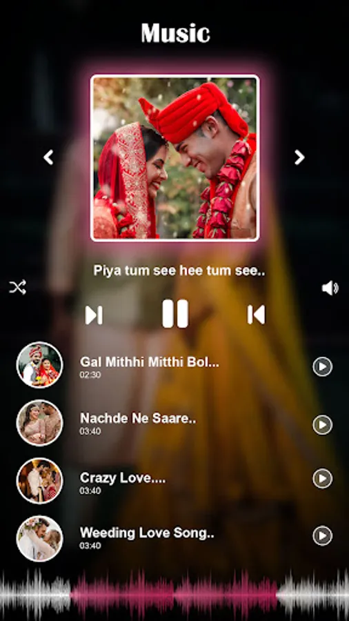 🎉 Make a stunning video with different animation transition effect and also you add your favourite background music for your marriage video story and create video for them.