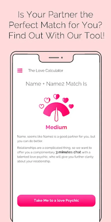 * Personal Love Calculator Match Tool that will help you see beyond the things you know.