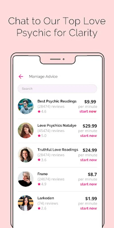 * Detailed profiles listing of expert psychic readers that offer love & spiritual advice