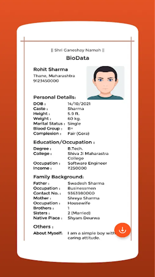- Save biodata in image & pdf format