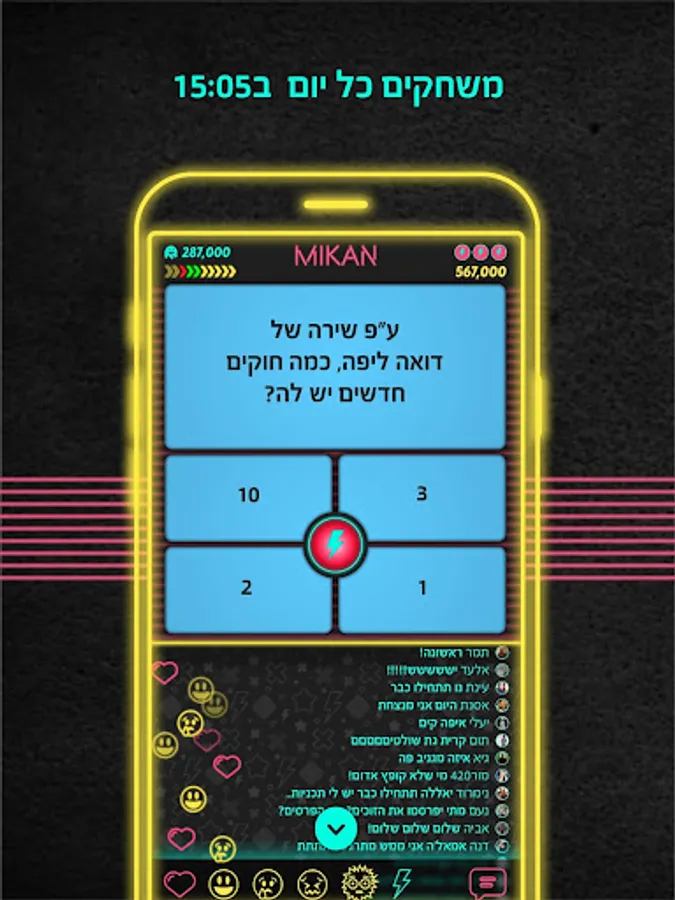 And there's a Mikan Plus! Every day Kim Or Azulay will also appear in Mekanan Plus. 3 times a day on Tin Nick Channel, Kim will present one special question you will be able to answer on your smartphone. All the players who answer correctly will be directly awarded to the Buzz - a lifeline that will help you in Mikan and tell you the right answer.