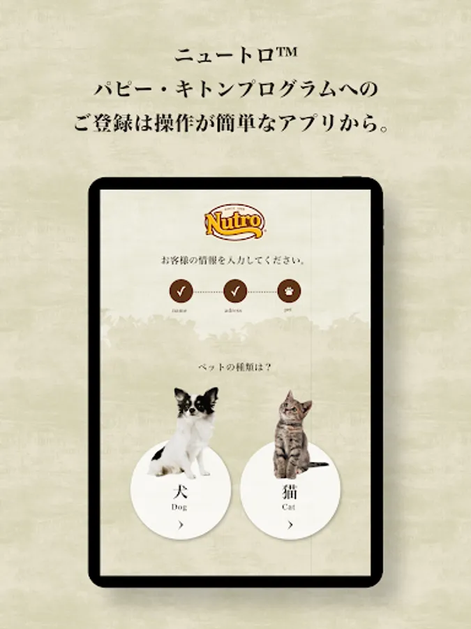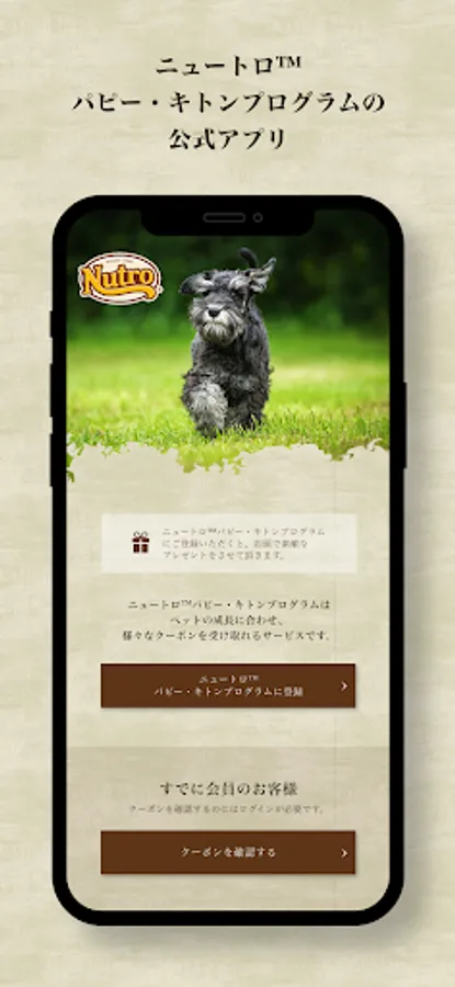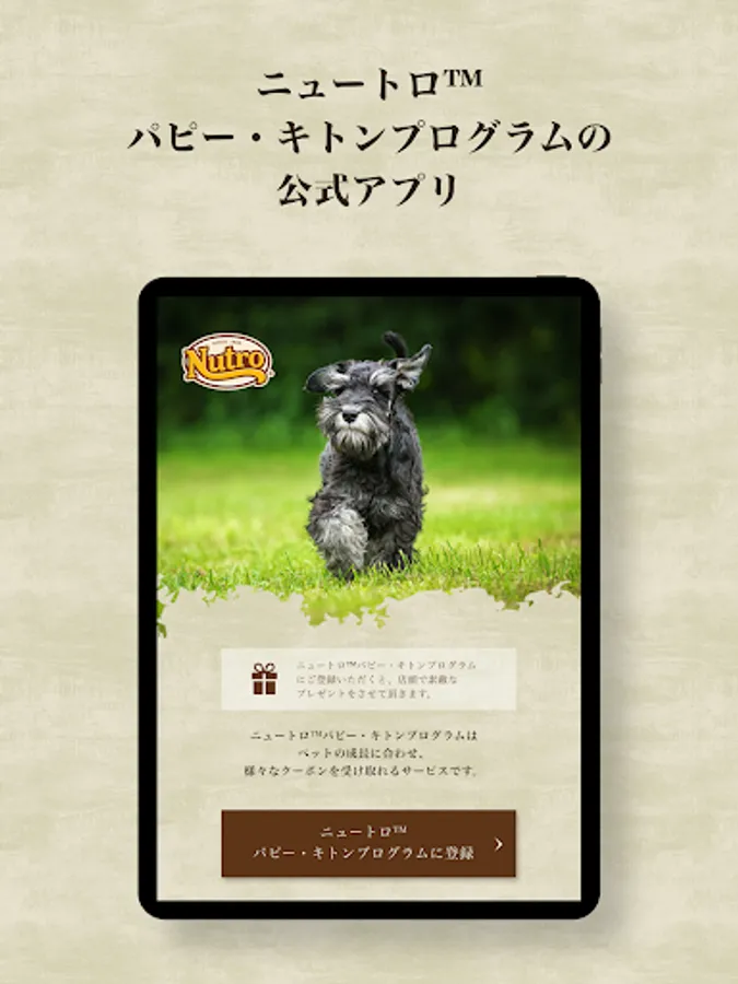 This app is an official app exclusively for customers who have registered with PKP from the QR code installed at the store when picking up pets at Nutro ™ Puppy Kitton Program (PKP) member stores and breeders nationwide. It cannot be used by customers who are not registered with PKP or who have registered on paper.