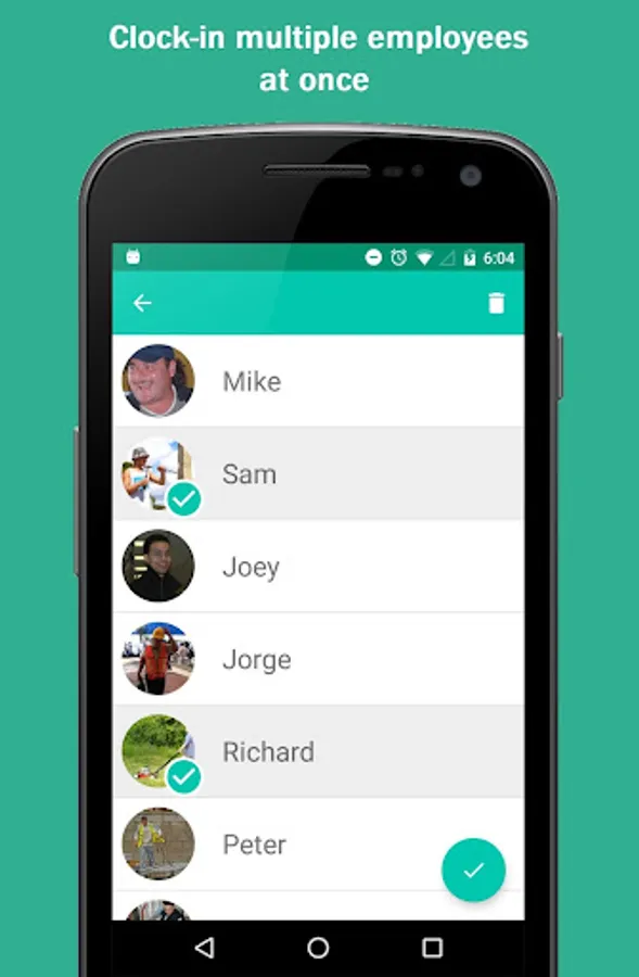 To see the delete and adding to active list option, you need to perform a long tap on the list, then these two options will appear. The bin icon on the toolbar is the delete option; the round button on the right-bottom corner of the screen is for adding the selected employees to the active list.