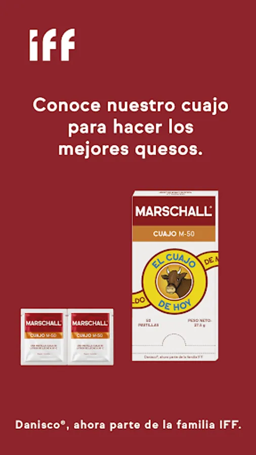 Marschall App is a free mobile application in which you will learn about our brand's rennet and we will share tips for you to learn how to make cheese with it. It will be easy and fun! You will also be able to geolocate our distributors and points of sale, and you will find step-by-step instructions for making cheese recipes. You can save them in favorites to have them at hand whenever you need them! If you have any questions, you can easily contact us.