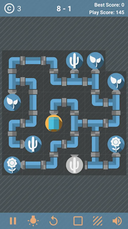 Once all pipes and plants are in the "flowing" state (blue), you can move on to the next level.