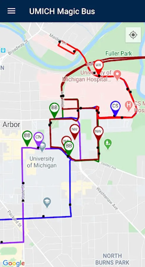This is the unofficial University of Michigan bus tracker. It gives a similar user experience to the DoubleMap app.