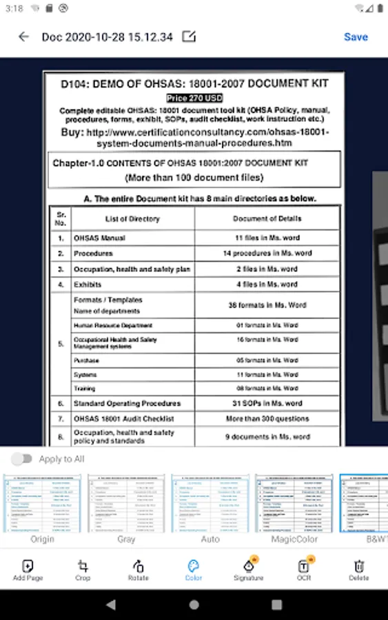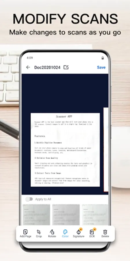 • Multi-page PDF and scan to PDF by using the PDF document scanner app.