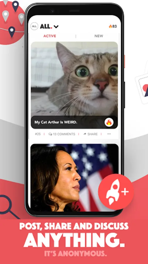 MARZ is an anonymous social network where you can share with the world....with no followers required. Post images, videos, links and community discussions across multiple different public channels on topics like news, politics, animals, sports, travel and more! Score fire for posting the hottest content and comments within the Marz community....all anonymously.