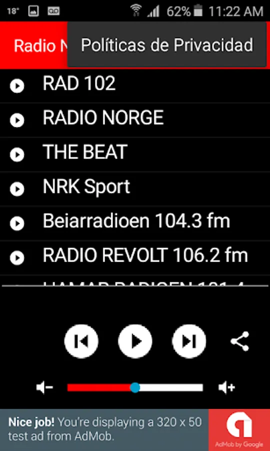 Start screen and the interface of this Norwegian radio application is very cool, and most important of all is that it is ekelt in use. As a user it is not necessary to look up radio frequencies with other radios. Simply, touch the name of your favorite Norwegian station.