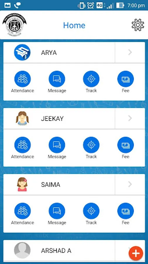 Parents get the privilege to know their kids' attendance on daily/monthly basis, communicate with respective teachers and also locate the school bus their kid is travelling.