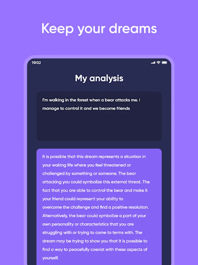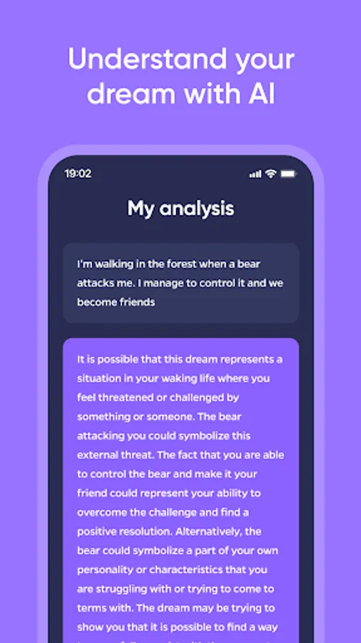 - Start by entering your dream into the app and get a detailed analysis in seconds.