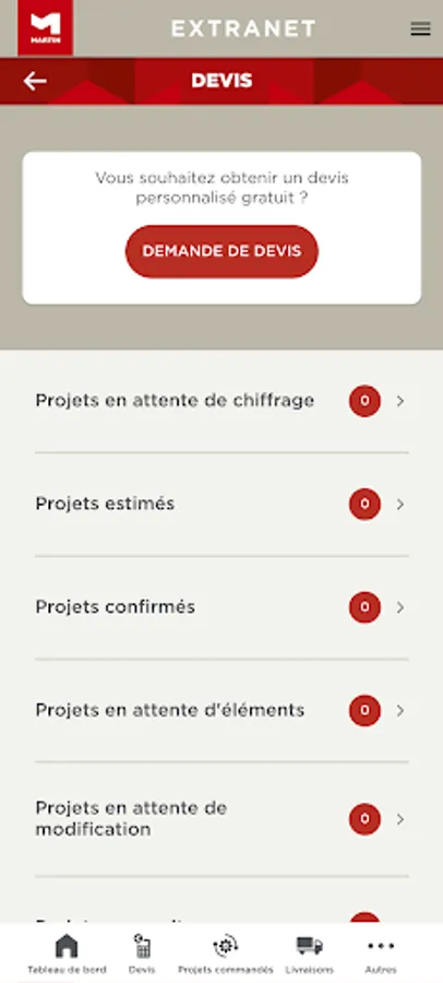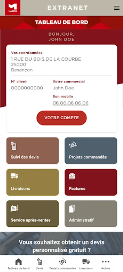 • Follow-up of your quotes, your projects ordered and your delivery requests