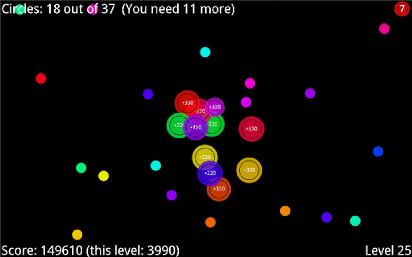 Invoke a chain-reaction and squash every circle on every level.