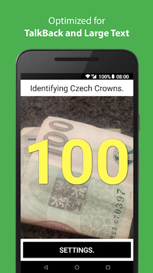 Simply point your camera at any banknote from over a hundred currencies and hear the value instantly.
