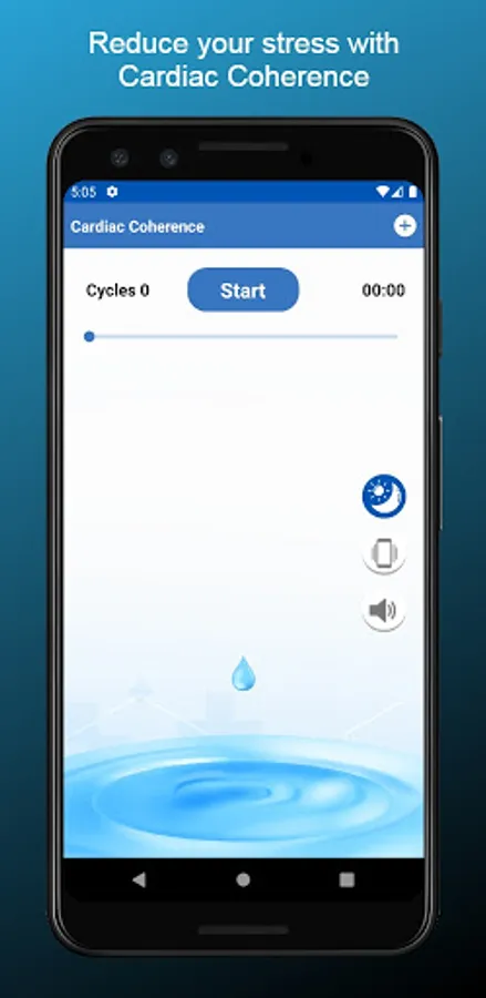 Just breathe in when the water drop is going up and breathe out when it goes down. A vibration allows you to follow the pace with your eyes shut.