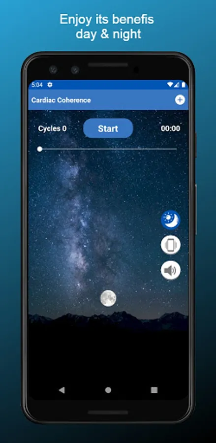 You can determine your current breathing rate by moving the water drop up and down. The chronometer will start, and the number of cycles will increase each time you bring the water drop up and down.