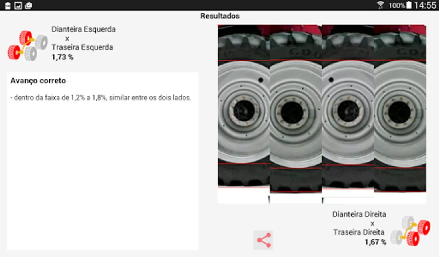 • photographs obeying the order should be taken: FRONT LEFT REAR LEFT FRONT RIGHT AND RIGHT REAR. Images can be taken directly in the application with the device camera and later charged in the same order and or directly through the Kinetic Pleadings application. For a better analysis we must take the pictures always frontally to the tire rim caring for the environment take the top of the tire and a solo track. Remembering that tilted photos and / or framework nonstandard hinder a correct analysis.