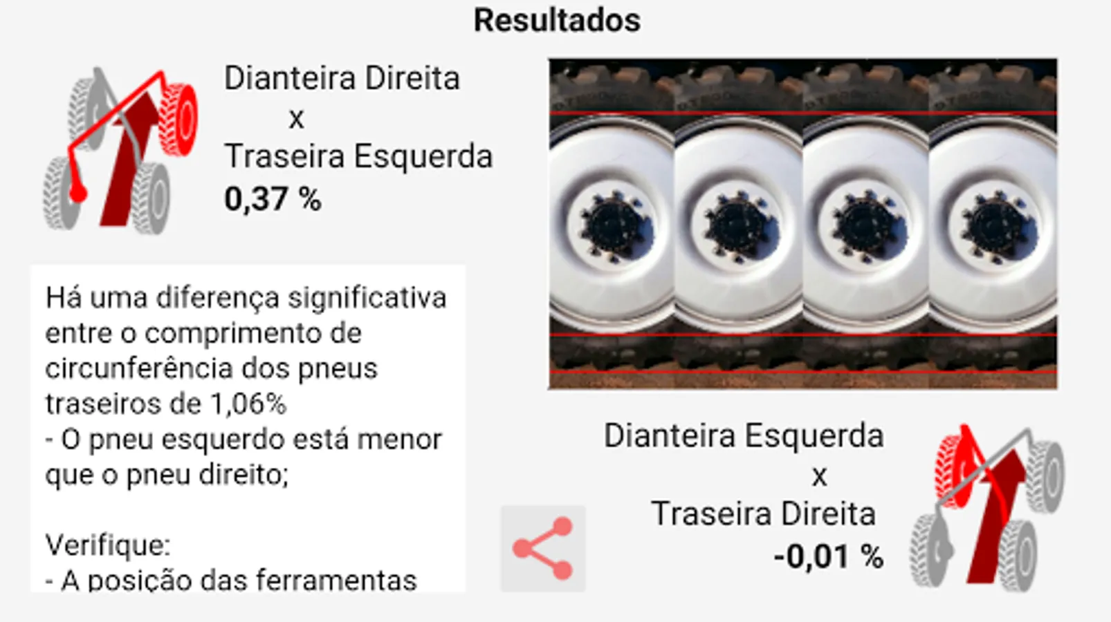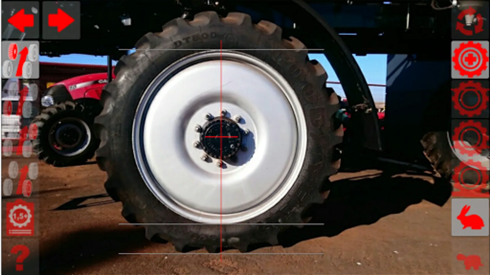 • To assess progress, the equipment must be loaded with the pressures of fitting tires as the machine manufacturer's manual and / or tires. Position the machine on firm, level ground without incidence of shadow at the base tire for better identification of the soil in the images, if required maneuver the machine so that pictures have similar lighting. In case of very dark soils it is recommended to select the base tire with white chalk for better identification of the threshold tire contact with the ground.