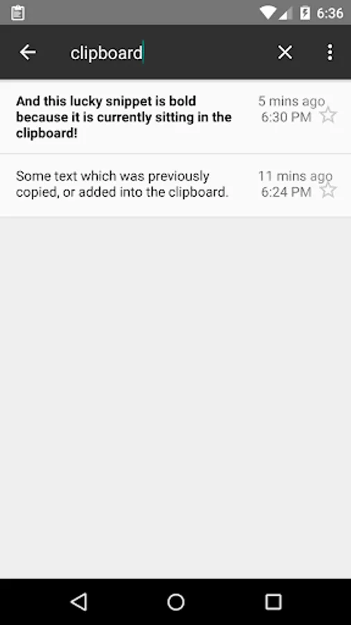 In addition it integrates with the Android Quick Search Bar so you can directly search your clipboard history. It further integrates with Google's cloud backup and restore, so any time you wipe your device your contents and settings will be restored the next time you install the application (only works on Android 2.3+ and backup/restore must be enabled in the 'Privacy' settings for your device).