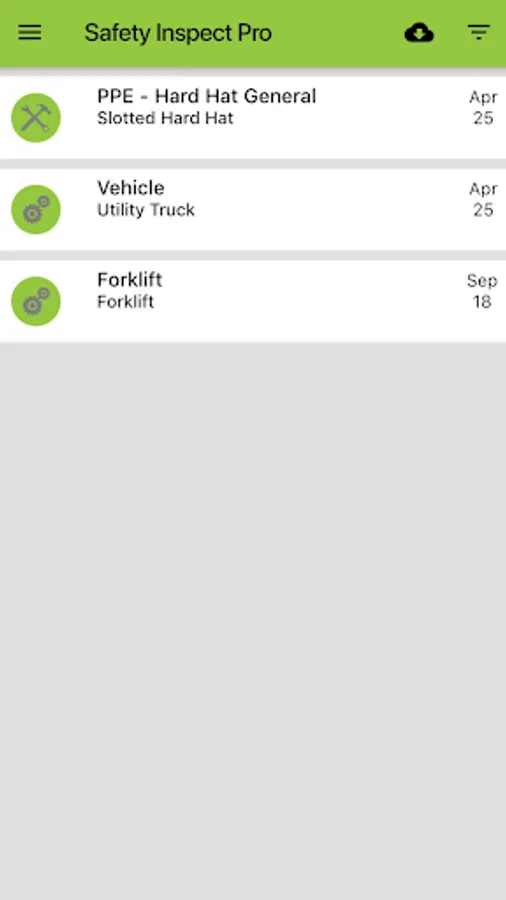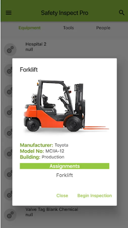 Ability to manually inspect Equipment, PPE, Buildings and People from your SafetyHive Database
