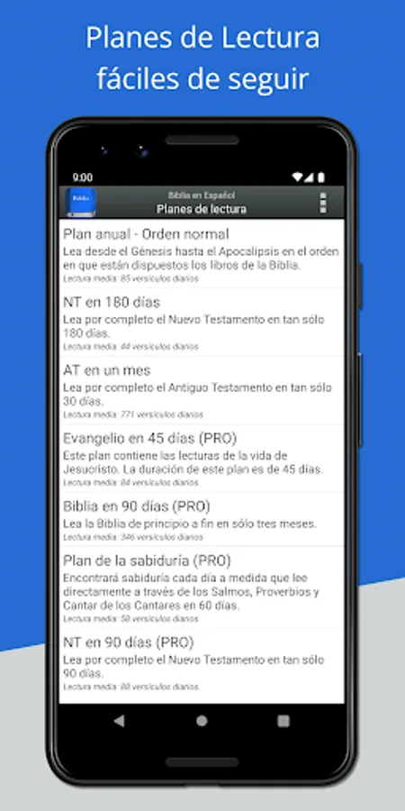 - Reading plans: multiple reading plans to read the Bible in 30, 45, 60, 90, 180 or 365 days (some only in the PRO version).
