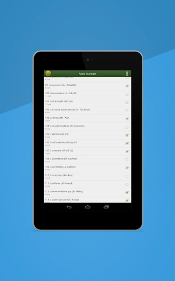 - Audio Manager: easily download and delete recitations.