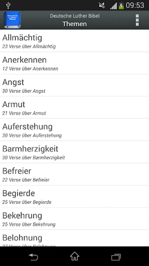 - (NEW) Topics: Read a selection of verses on more than 100 different topics from the Bible.