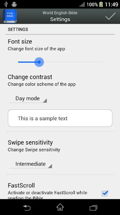 - Read the Bible in landscape / horizontal or vertical mode.