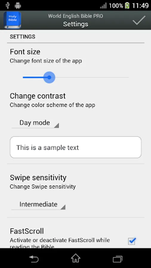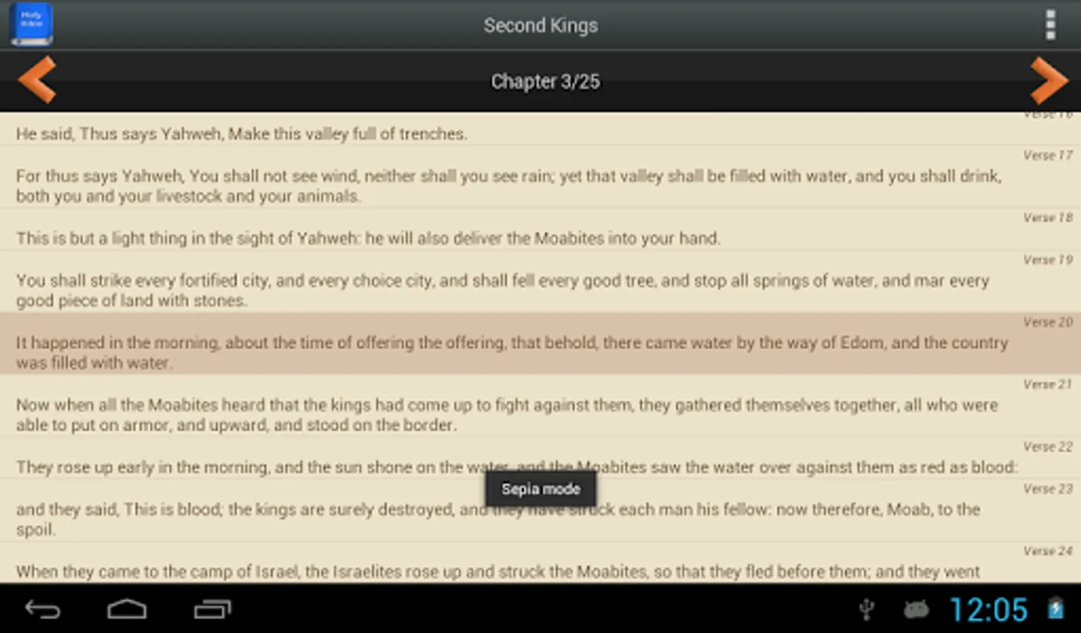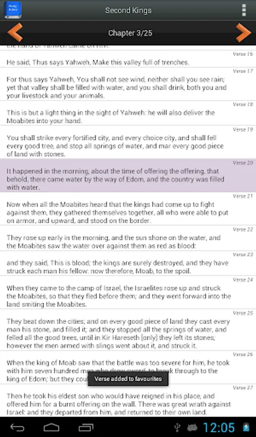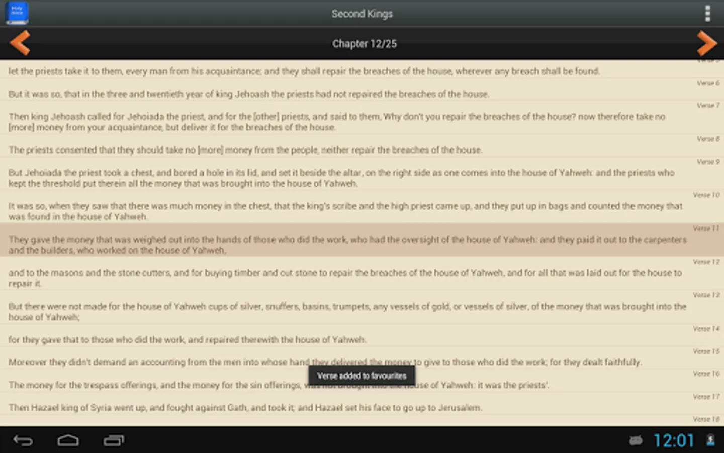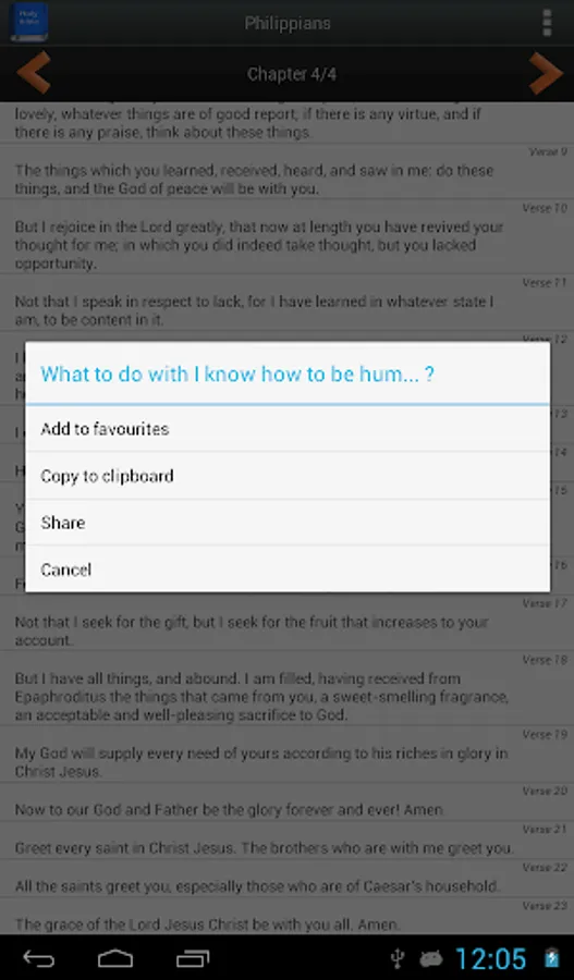 - A long press over a verse will addc it to favourites or let you share it on social media and messaging apps.