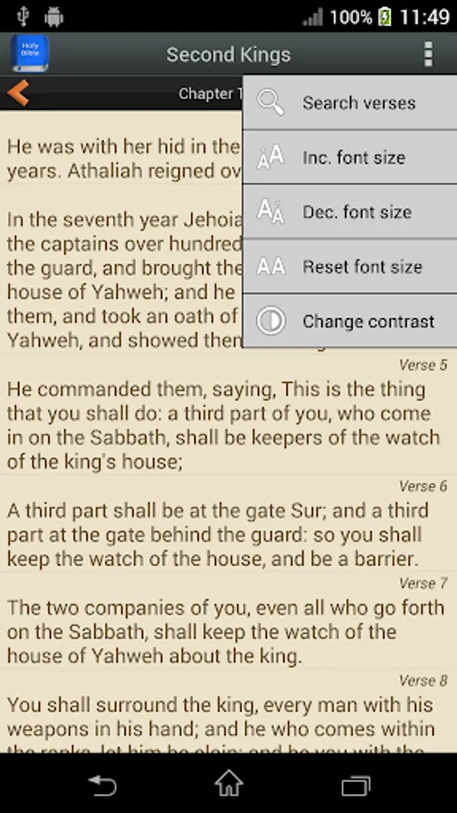 - Browse your favourite verses. You can delete each one of them making a long press.