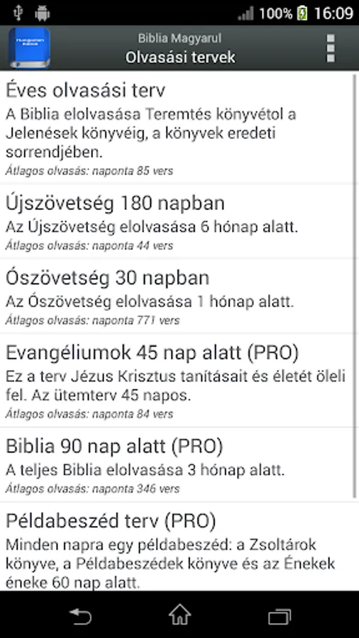 - Reading Plans: Multiple reading plans to start 30, 45, 60, 90, 180, or 365 days of Bible reading. (Some schedules are only available in the PRO version.)