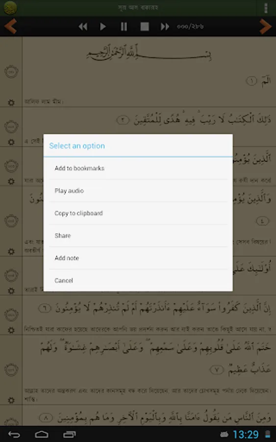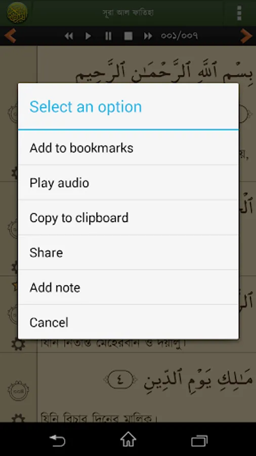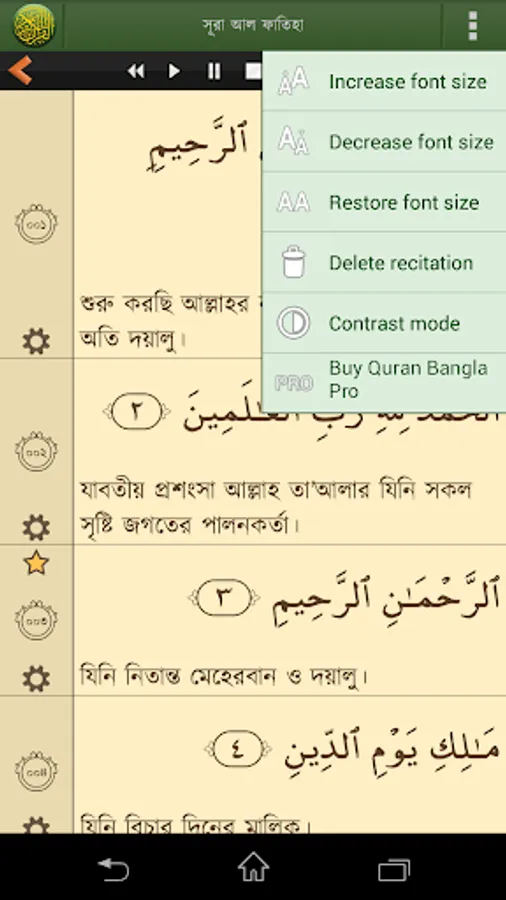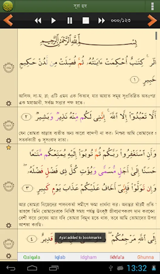 Functionality of the Advanced version (Quran Bangla Advanced)