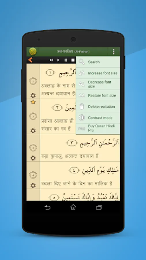 Functionality of the Advanced version (Quran Hindi Advanced)