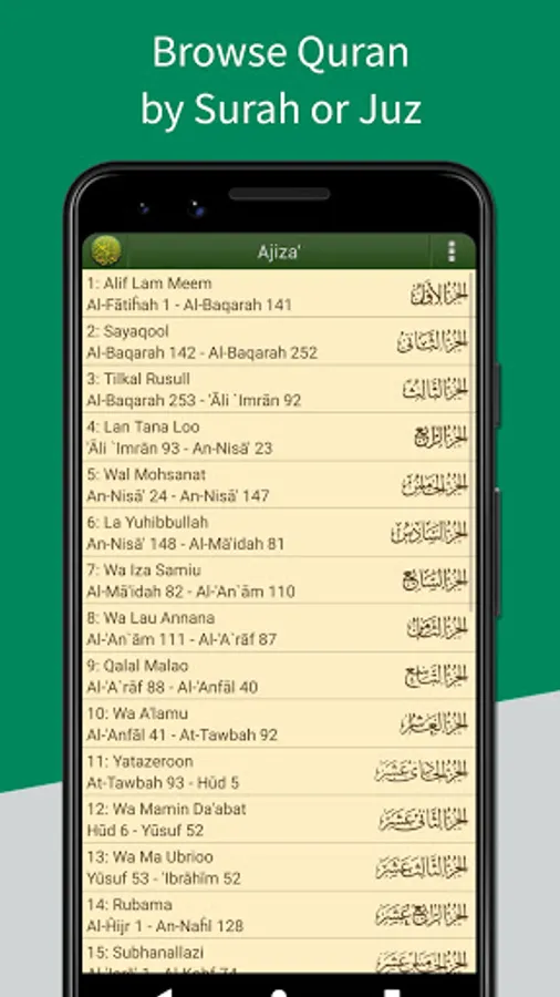 - Swipe from left to right to go to the previous surah, or from right to left to go to the next surah.