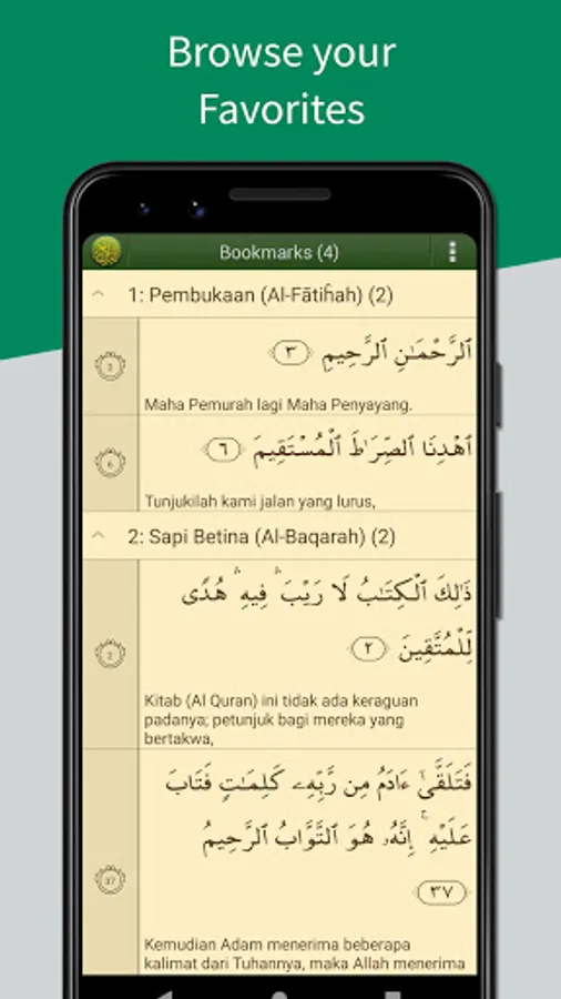 - Long click on a verse will add it to favorites, share it on social media or messaging apps, or attach a note to that verse.