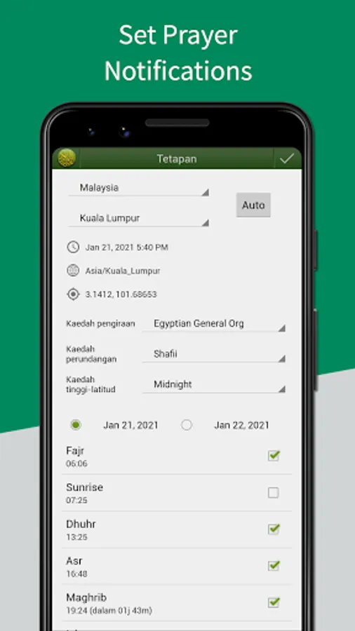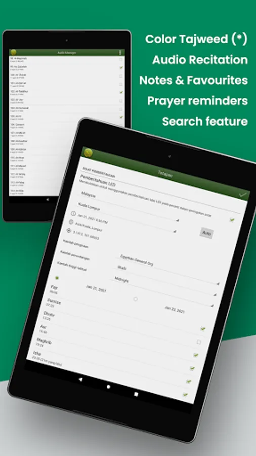 - Prayer reminders: subscribe to your local prayer time notifications. Auto-inventory available.