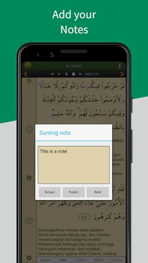 Additional functions of Advanced version (Quran Bahasa Melayu Advanced)