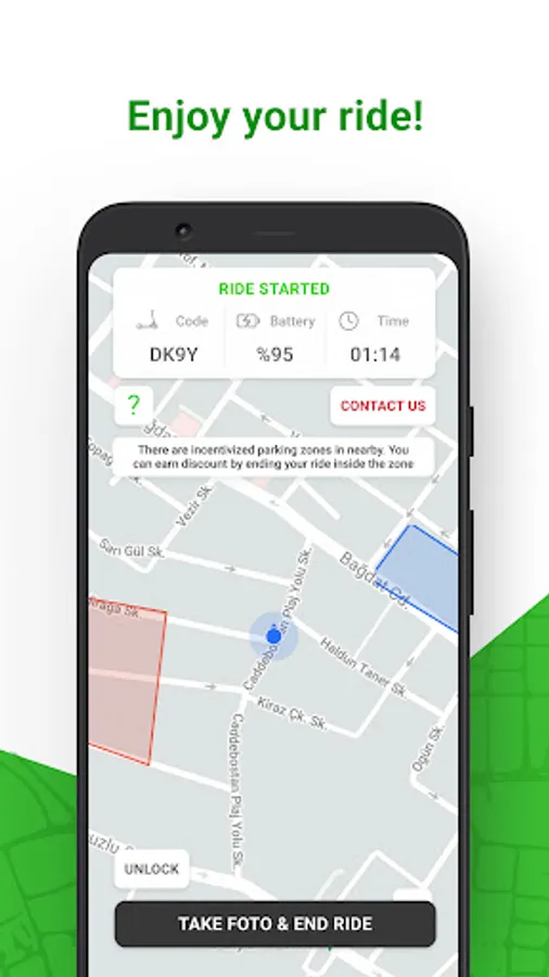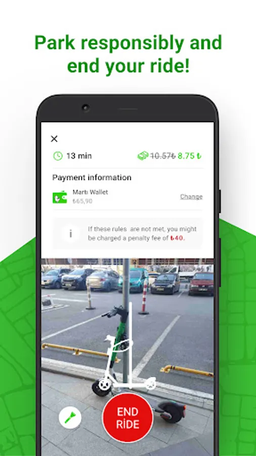 - When you want to end your ride, park according to the rules and end your ride by taking a photo of the entire vehicle (scooter, mobilet, moped).