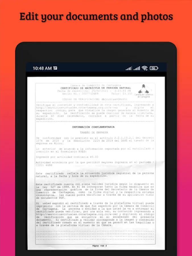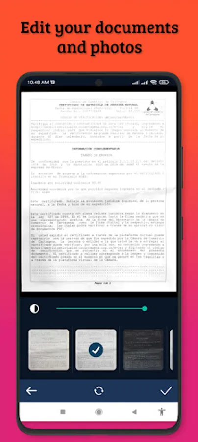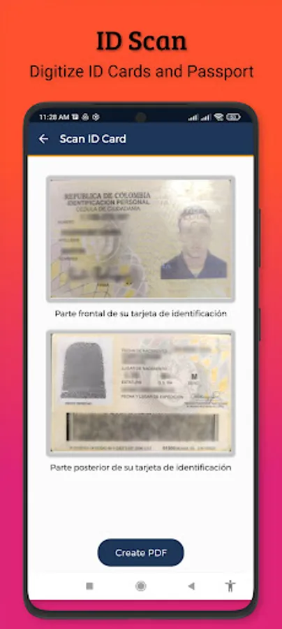 ► Free document scanner app: Now you can scan all your identity documents from your cell phone and without a watermark. Scanned files are saved in the scanner app with the highest quality and sharp scan so you can access them whenever you want.