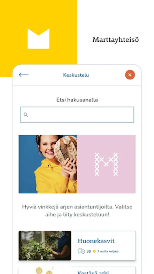 You can save and share your favorites and subscribe to reminders of home chores and tips. In the Martta community, you can ask for advice on everyday problems and share your best tricks for the joy of others. The app is a comprehensive package for sustainable everyday life for all martyrs and martyrs. Come with!
